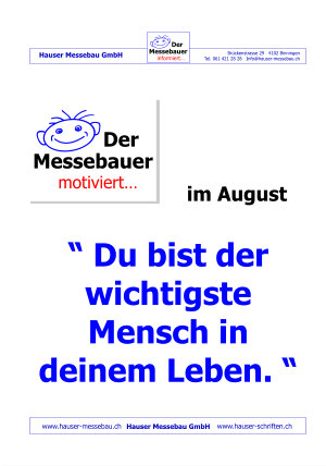 Der Motivations Slogan der Hauser Messebau aus Binningen. Möchten Sie auch jeden Monat so einen Spruch zum ausdrucken für an Ihre Pinnwand oder sonst gut sichtbar? Einfach bei uns anmelden unter: