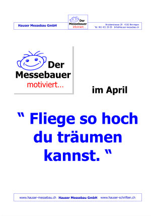 Der Motivations Slogan der Hauser Messebau aus Binningen. Möchten Sie auch jeden Monat so einen Spruch zum ausdrucken für an Ihre Pinnwand oder sonst gut sichtbar? Einfach bei uns anmelden unter: