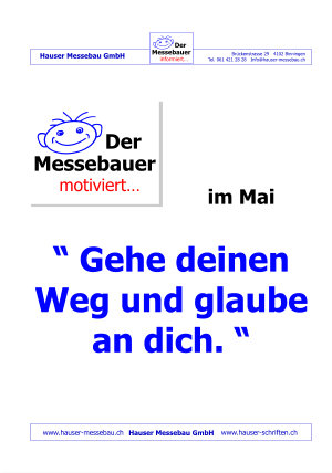 Der Motivations Slogan der Hauser Messebau aus Binningen. Möchten Sie auch jeden Monat so einen Spruch zum ausdrucken für an Ihre Pinnwand oder sonst gut sichtbar? Einfach bei uns den Newsletter anmelden unter: